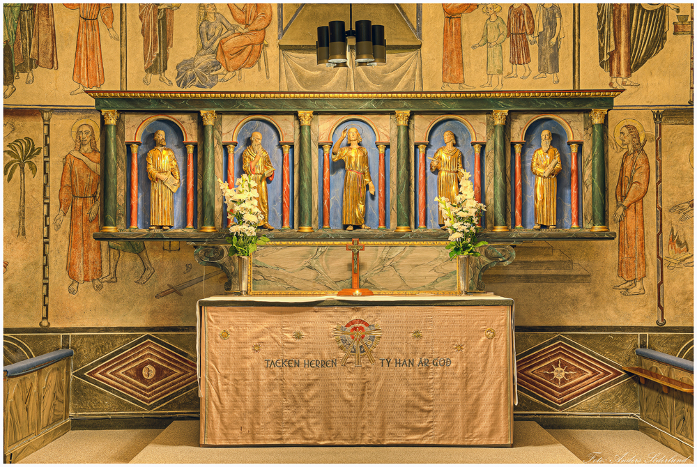 Orgeln innehöll de flesta stämmorna från kyrkans första orgel (12 st), byggd 1903 av Åkerman & Lund.
